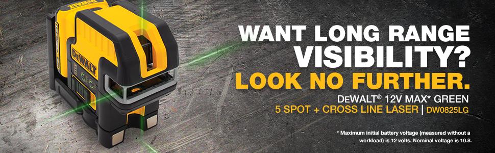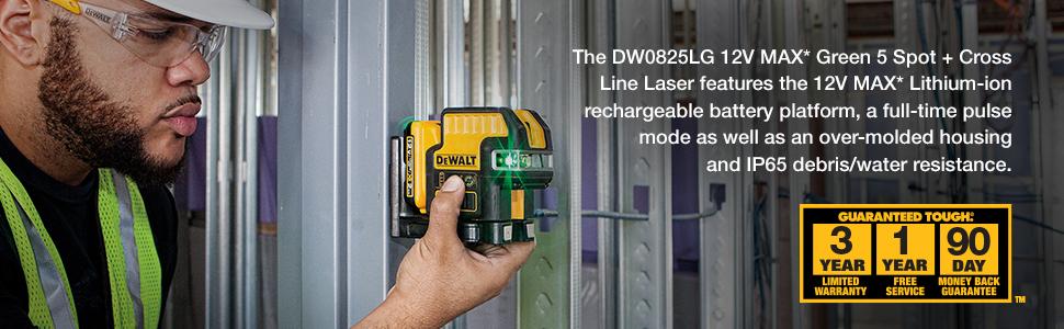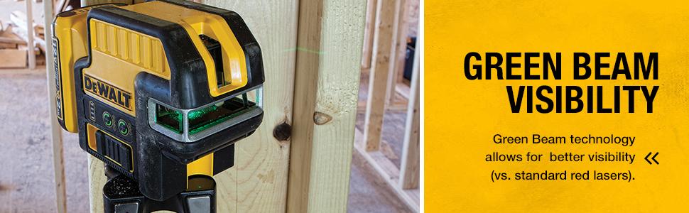The DEWALT 12V MAX* 5 Spot + Cross Line Green Self Leveling Laser Level offers many different uses on the job site. With spot and cross line capability. use this self leveling laser level for multiple applications. With an IP65 debris/water resistance rating. 2-meter drop protection and a highly-visible green beam. this laser equips users to work in the toughest conditions.