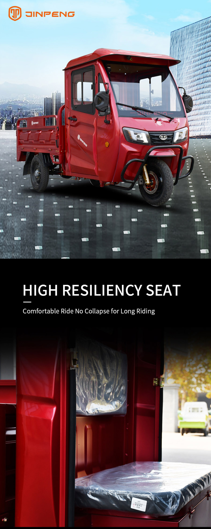 The vehicle features a closed driving cabin at the front. which provides protection from rain and sun. The cabin also comes equipped with a fan. which provides a cool breeze during hot summer days.