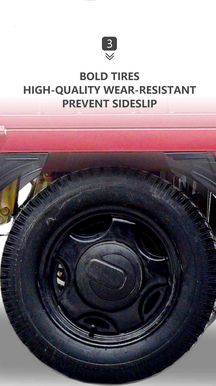 Our model features a spacious cargo box that is perfect for handling multiple packages. ensuring that your deliveries are secure and organized throughout transit. The robust roof and optional canopy provide added protection against the elements. making it an all-weather ally for your delivery needs.