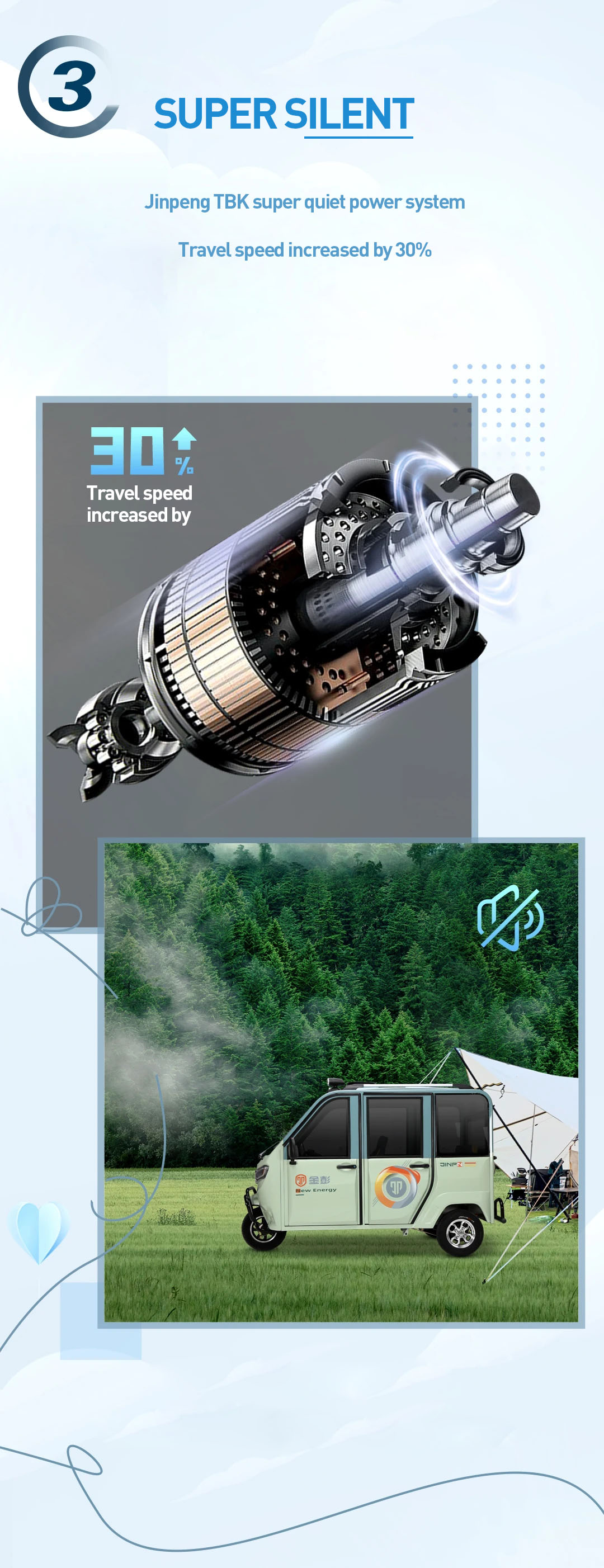 Comfortable design: Foam cotton technical cloth seats bring you sofa-like comfort. HG's interior adopts level 3.0 environmentally friendly injection molding. making the luxurious interior safe and odor-free. HG uses Jinpeng's TBK ultra-quiet power system. which reduces the noise during driving by twice that of similar products.