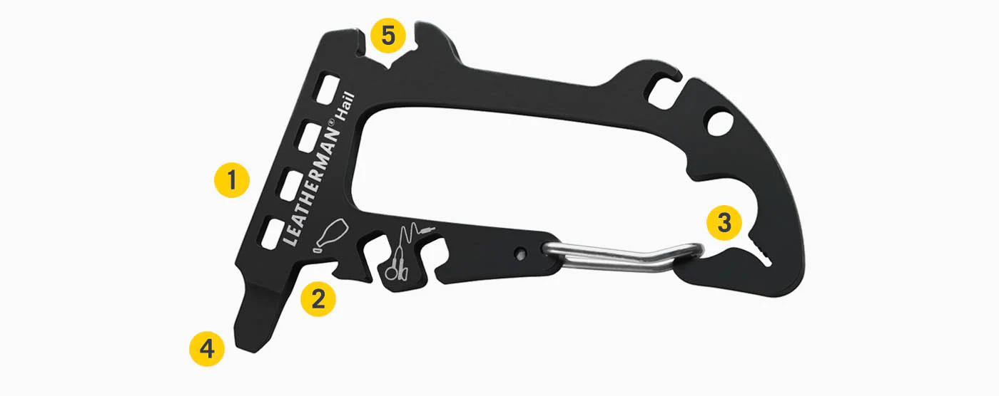 Designed to crank on a binding, open a beer, tune your board or stash your ear buds, the Leatherman Hail snowboard tool was a joint effort between our tool engineers and the Signal Snowboard® designers. We worked to fit quick-fix features and cool extras into a lightweight tool that clips onto your belt, pack or jacket. So go ahead clip 'em on and put 'em to the test, these travel-friendly Portland, Oregon originals are built to last.Specifications