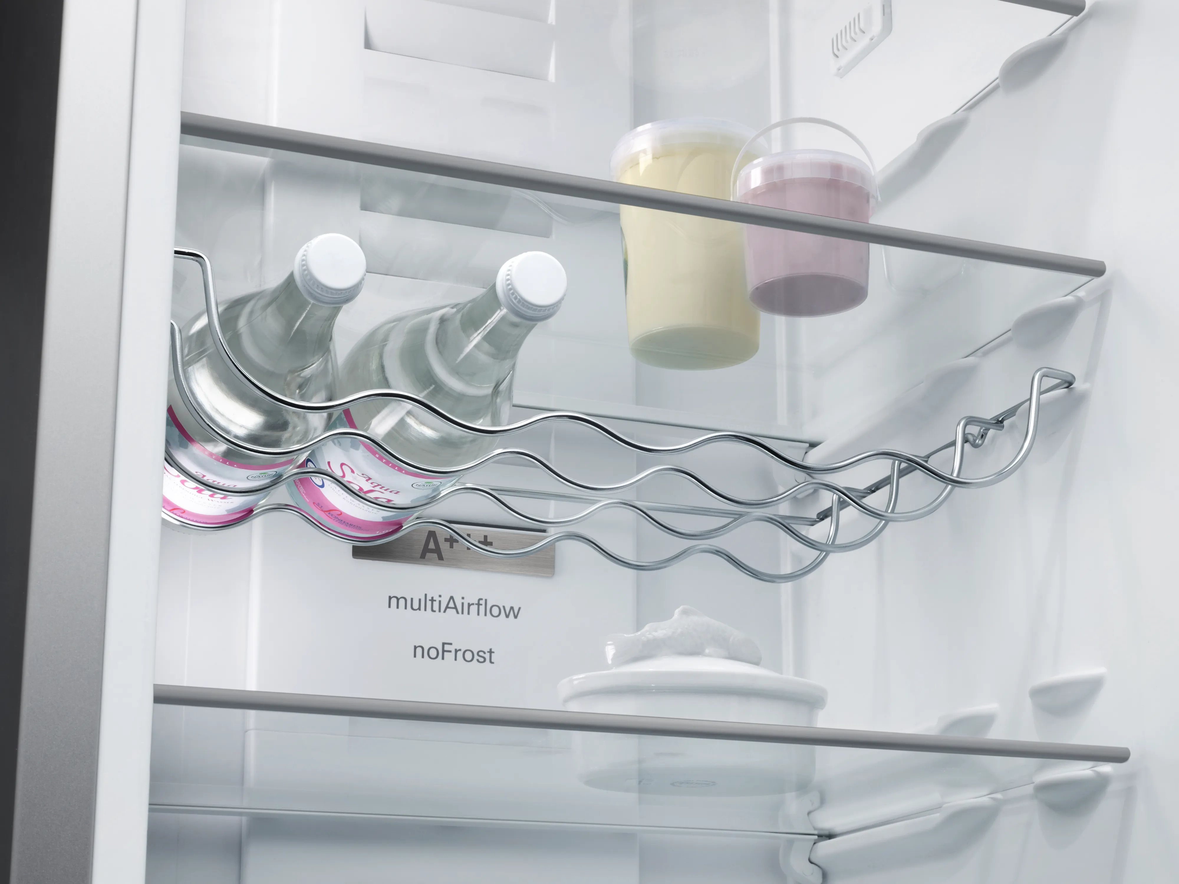 Uneven cooling in your fridge makes it hard to keep all your food items fresh. But those days are gone. The high-gloss backwall with multiAirflow circulates air evenly for a constant temperature on all levels. Food you’ve placed inside recently cools quickly, and the system works hard to preserve your food’s freshness.